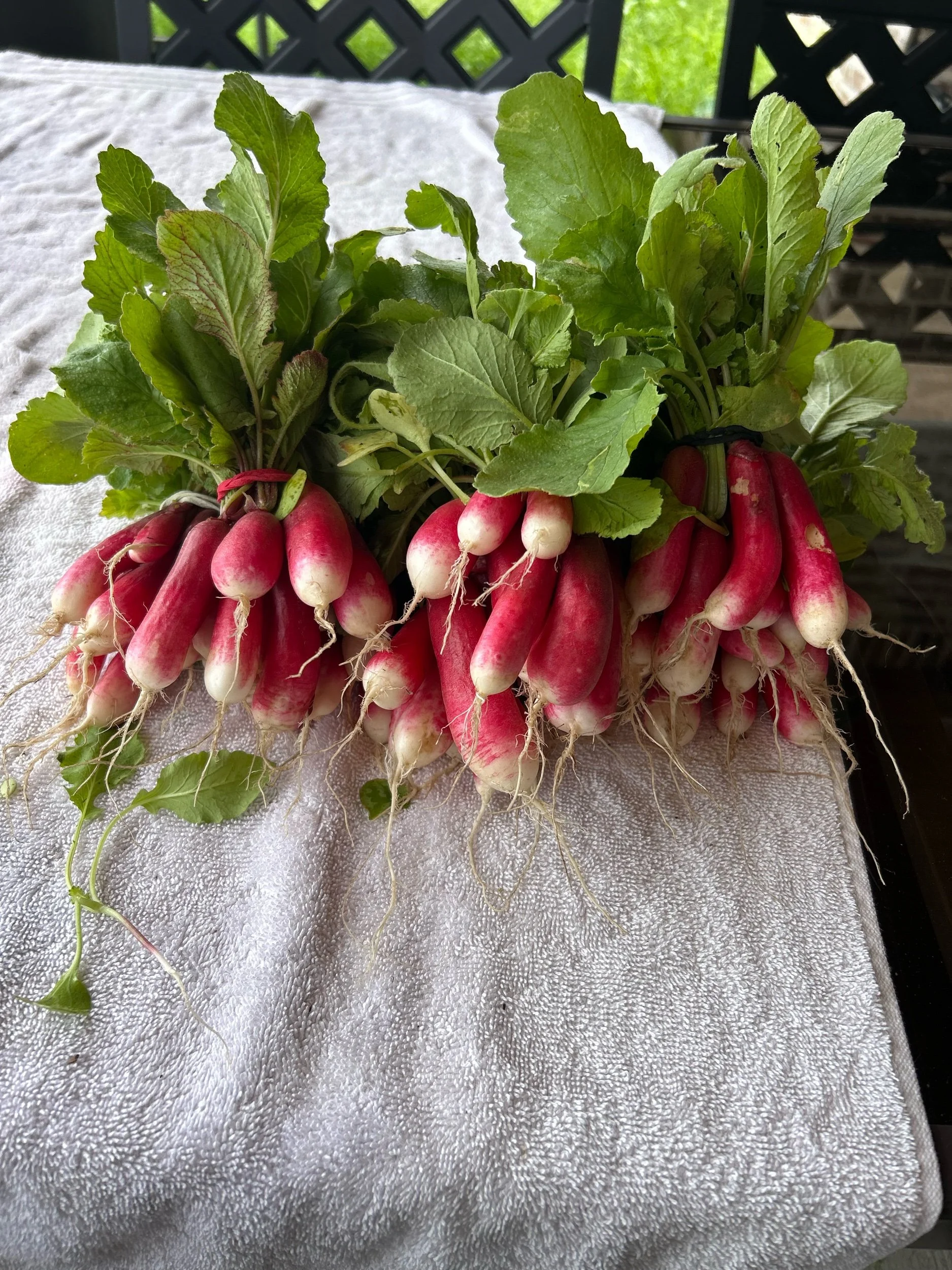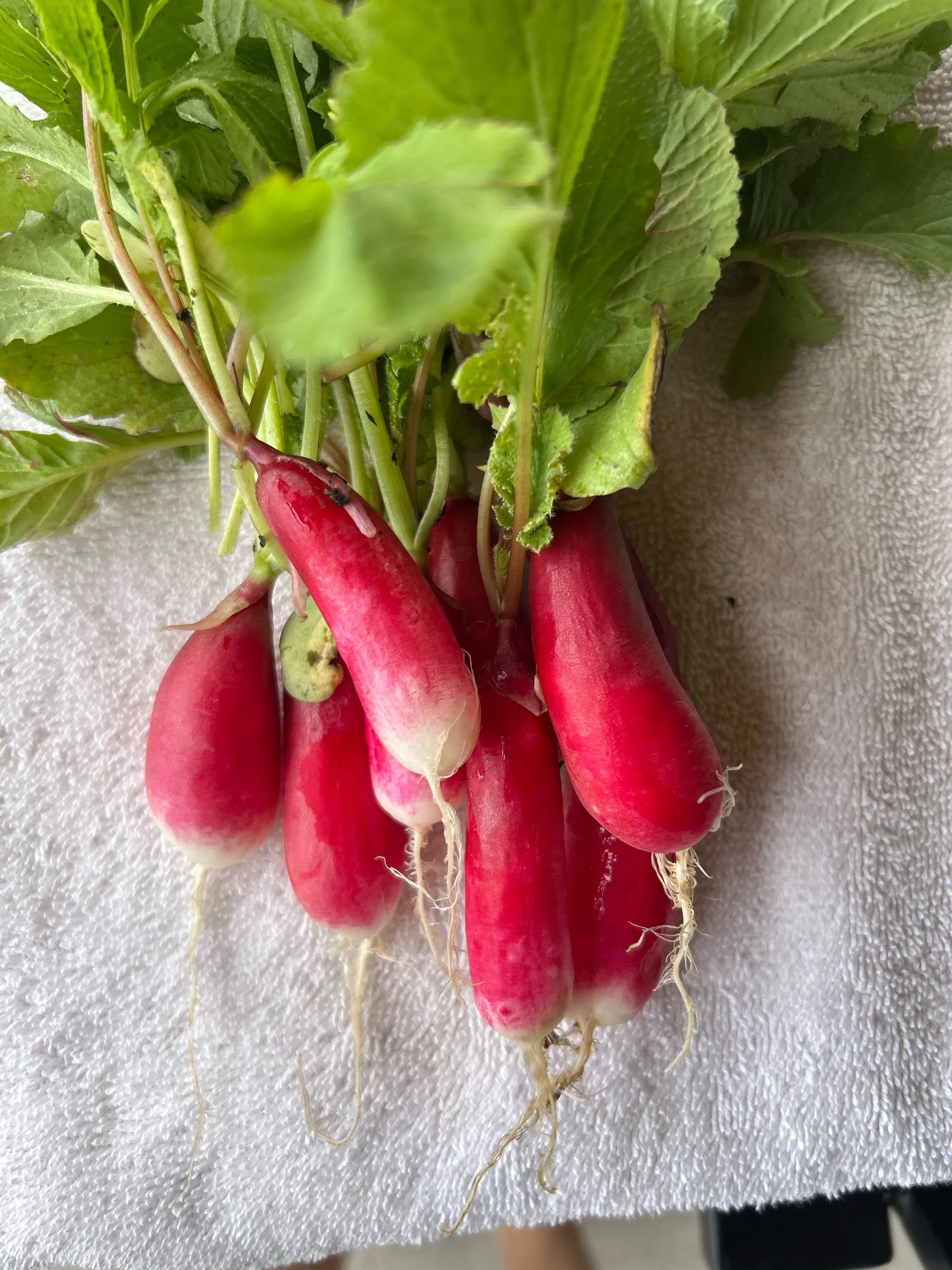Store › French Breakfast Radishes Image 1 of 3 Image 2 of 3 Image 3 of 3 French Breakfast Radishes $3.00 1 bunch of freshly harvested radishes. 8-10 radishes per bunch Get notified by email when this product is back in stock Add To Cart Added! 1 bunch of freshly harvested radishes. 8-10 radishes per bunch
